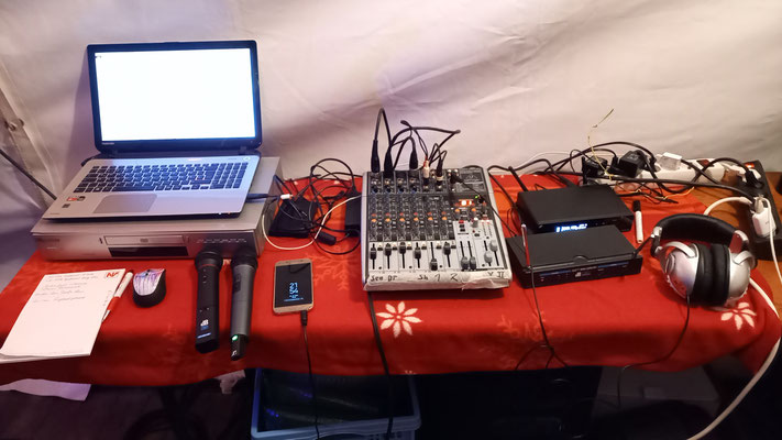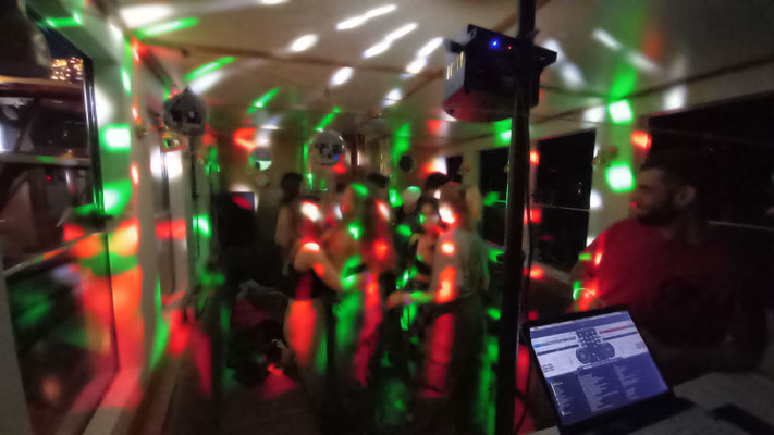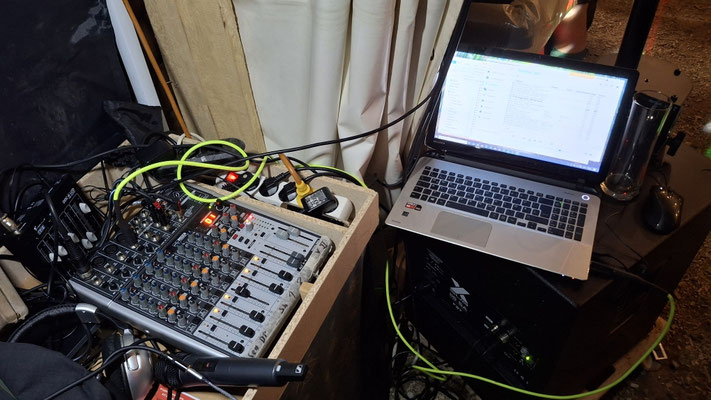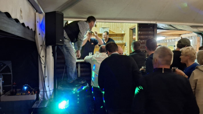Danach eine rauschende Polter-Party, sehr eng in Bar und Zelten, teilweise verwinkelt. Hier bin ich besonders flexibel bei Platzierung von Boxen und unterschiedlicher Lautstärke.