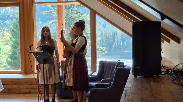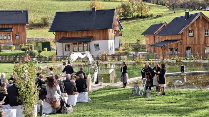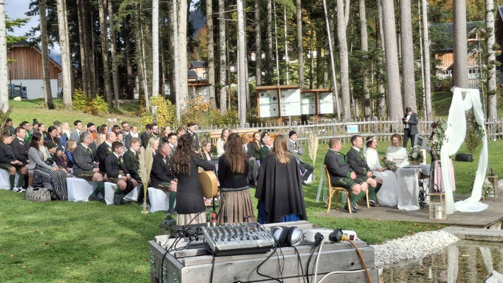 Bei der Hochzeit im Freien (hier am Ödensee) klingt das Trio "Dreiklong" mit leichter Verstärkung und viel Hall ähnlich wie in der Kirche.