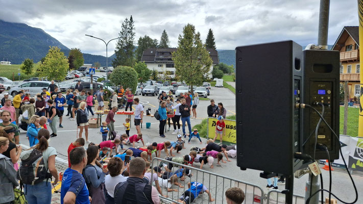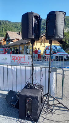 Ein Sportevent hat sich die beste Beschallung verdient, wie hier beim Hinterberger Lauf 2025: 1 FBT Subbass 15", 2 FBT Ventis 206a, 1 db Opera 10", Funkmikro Sennheiser und den besten Platzsprecher Armin Flatscher.