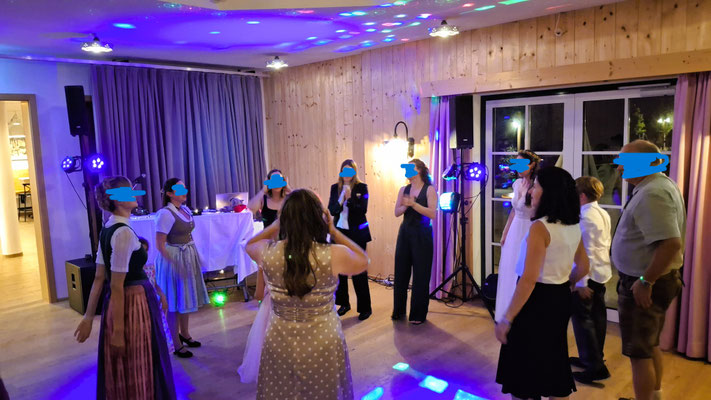 2. Hochzeit 2025: In der Zloam, Grundlsee, ca. 70 Gäste, 1xFBT-Bass und 2xFBT-Ventis Satelliten, 4 Par-Scheinwerfer, 1 Laser-Licht, 2 Effekt-Lichter, Nebelmaschine, Sennheiser-Funkmikro. Von der Kinderdisco bis spät Nachts wurde die Wunschmusik des Hochzeitspaares gespielt und wurden weitere Wünsche erfüllt.