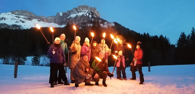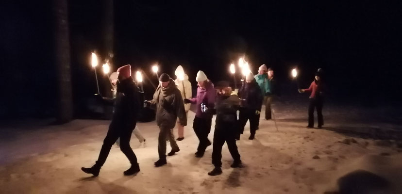 Wir haben Spaß, außer ein Wildtier wird gesichtet, dann beobachten wir in Ruhe. Bevor es dunkel ist, entzünden wir die Fackeln, mal sehen wie wir zurückfinden.